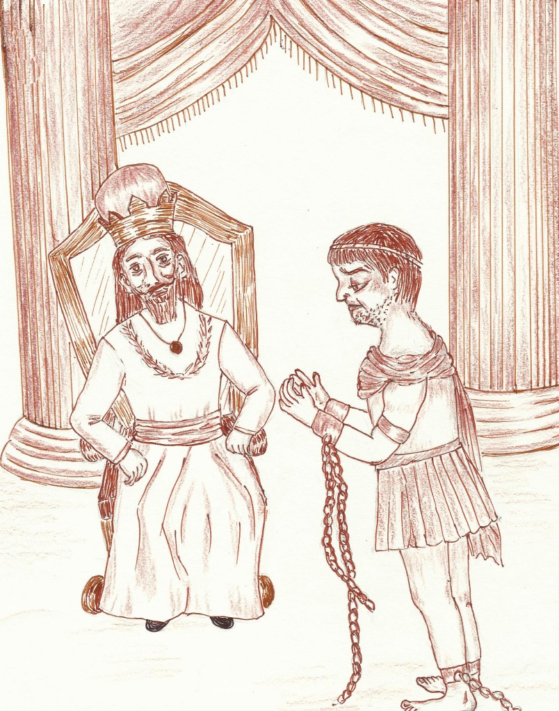 The Commander met the emperor in his house, where a makeshift court was held. Shahpur narrated his travails in Rome and his fortunate escape, for which he expressed his gratitude to the Iranian attendant. He further informed them to keep his identity a secret as the Roman Caesar should not know their plans till the minister gets the army ready and they are prepared to launch an attack.