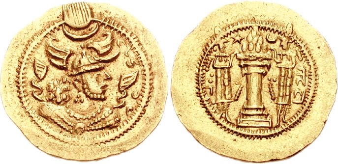 The devout nature of Piruz was revealed at the difficult time of famine during his reign, when, after taking several stern and practical measures, he even instructed his subjects to pray to God for securing help. He even established and looked after Atash Behrams. Images of fire altars are see on the reverse of his coins.