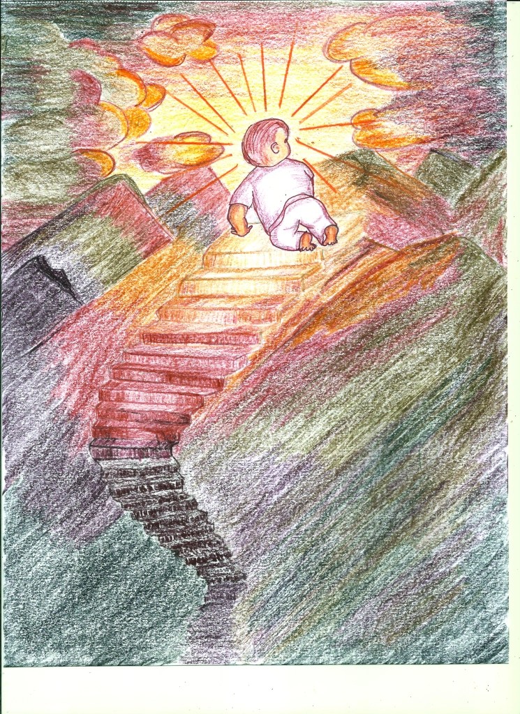 King Noshirwan spent his days in seclusion and prayers. About a year after his declaration of his heir, he had a dream as he slept after his night prayers. In the dream, he saw a brilliantly shining child come out at night and happily climb a very tall staircase having forty steps, which was nearby. When he reached the top, his brightness lighted up the whole world, except the palace of the king.