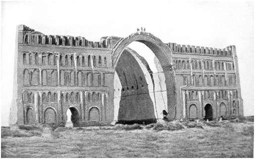 The Tāq-i-Kasrā also known as Aywān-i-Kasra, is a majestic palace built by Noshirwan around 540 CE. It is the only surviving remains of the Sasanian majesty in Ctesiphon, now near Baghdad. The arched aywān hall, open on the front side, and the throne room behind the arch are almost 100 feet high.
